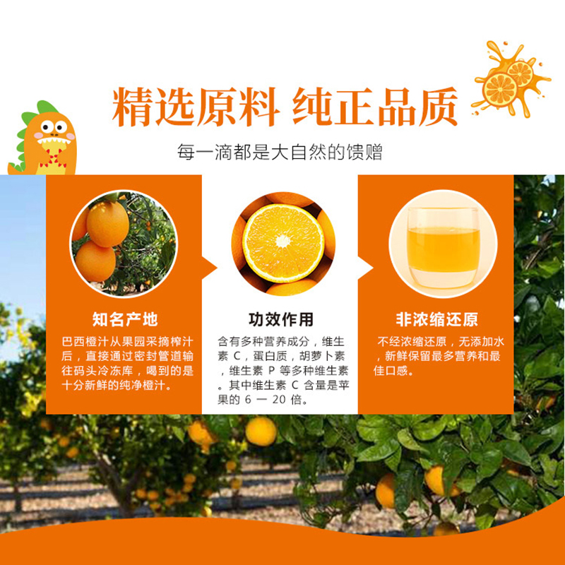 水、橙汁、白砂糖、果糖、檸檬酸、黃原膠、山梨酸鉀、苯甲酸鈉、誘惑紅、檸檬黃、食用香精